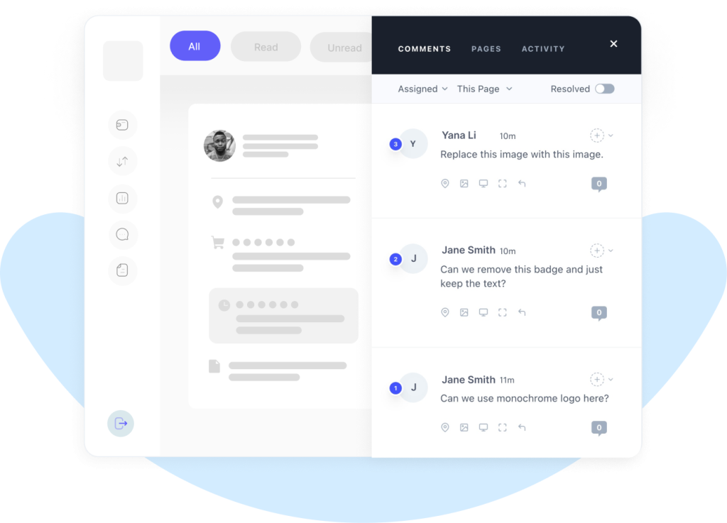Empower your product team to provide specific, detailed feedback on design elements and suggest changes directly on your website or design files.